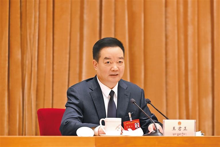 在认真听取大家发言后,王君正表示,嘎玛泽登同志所作的政府工作报告,深入贯彻落实习近平总书记关于西藏工作的重要指示和新时代党的治藏方略,按照自治区党委十届七次全会暨自治区党委经济工作会议要求,总结成绩实事求是,确定目标稳中有进,部署工作扎实有力,是一个催人奋进的好报告,完全赞成。