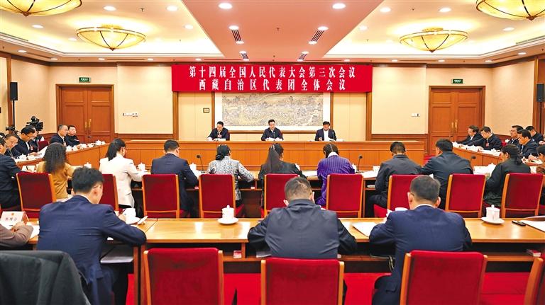 本报北京3月6日电(记者 张黎黎 张尚华)3月6日,西藏代表团举行全体会议,传达学习习近平总书记在参加十四届全国人大三次会议江苏代表团审议时的重要讲话精神,继续审议政府工作报告,审查计划报告和草案、预算报告和草案。