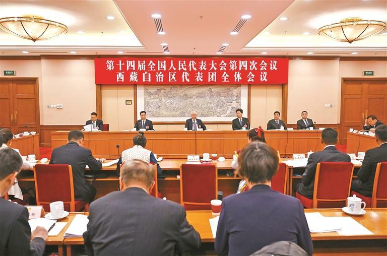 本报北京3月6日电(记者 张黎黎 刘文涛)3月6日,西藏代表团举行全体会议,传达学习习近平总书记在参加十四届全国人大四次会议江苏代表团审议时的重要讲话精神,审议政府工作报告、审查“十五五”规划纲要草案。